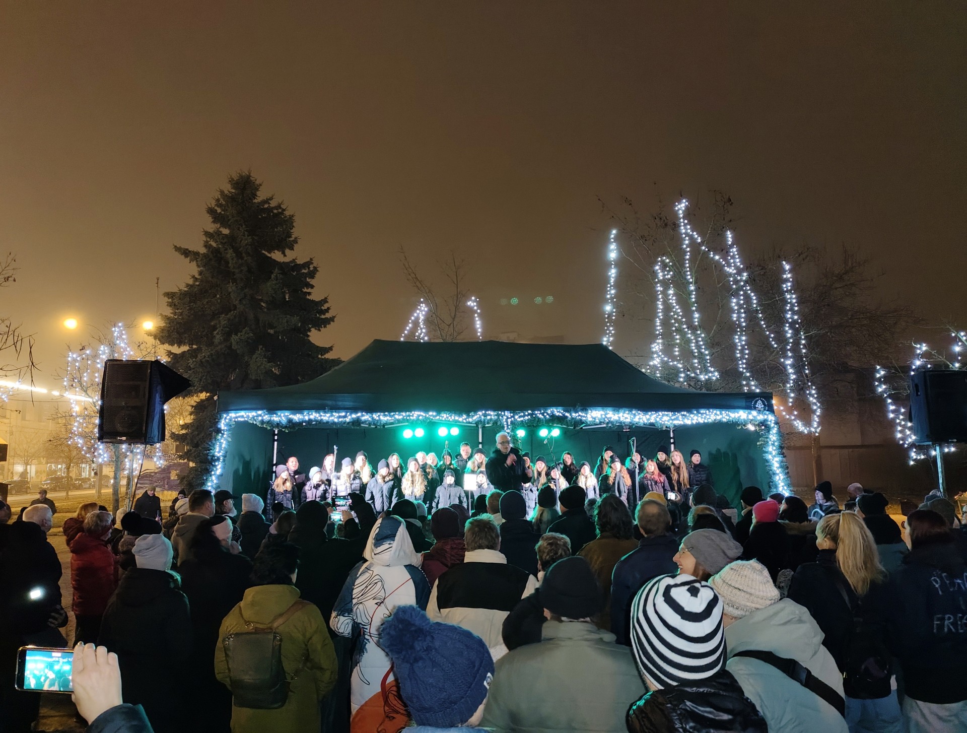 Vánoční trhy před budovou radnice završilo rozsvícení vánočního stromu